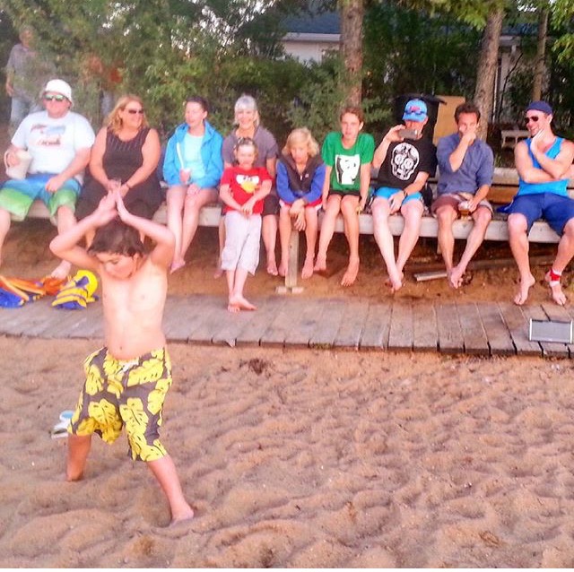 Emma Lake was as much or more fun than ever this year: spectacular sunsets, gourmet food, jumping on the old tractor tube, chasing Pepper,skiing, tubing, surfing, wakeboarding, kneeboarding, canoeing, sailing, fishing , cruising in the Tin Princess, Mastercraft and Pontoon boats, Johnny entertaining the grandkids, Eli doing his signature dancing, improv hootenannies, picking ( and eating ) Saskatoon berries, the muu muu reception for all arrivals ( stitched by hand by Lan from sheets that have been at the cottage for decades ), but most of all having Lucinda, Kevin, Bryn and Ellis with us after so many years.